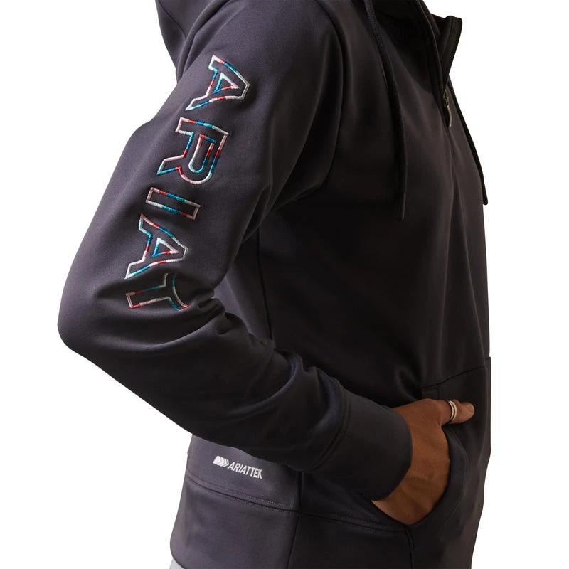 The Ariat Tek fabric of this hoodie looks and wears well when feeding chores are in your future. Hay, sawdust and dirt brush right off so you aren’t dragging it into your house or vehicle.