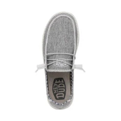 - Stretch, chambray-blend upper